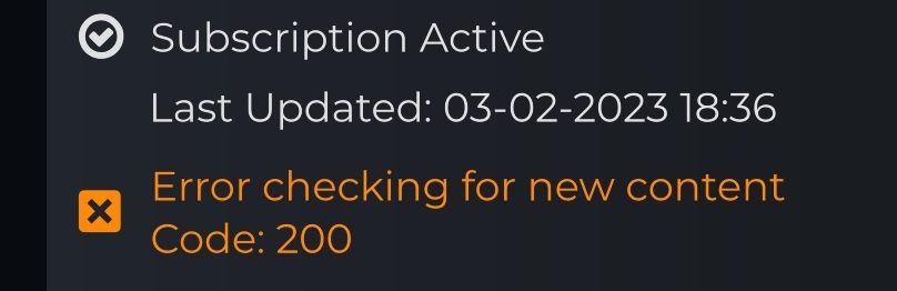 Got an error code 200 (error checking new content) today. What does this mean? Searched the Internet and forum for it, couldn’t find this one.
